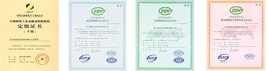 國光視產(chǎn)品為企業(yè)生命。公司通過了ISO19001質(zhì)量管理體系認證,對產(chǎn)品生產(chǎn)流程進行嚴格的質(zhì)量管理。國光質(zhì)管部是國家石油和化學工業(yè)協(xié)會認定的“A級質(zhì)檢機構(gòu)”,配備了Agilent1100、1200A、1200B、1200C液相色譜儀、Agilent 6820氣相色譜儀、原子吸收分光光度計、原子熒光光譜儀等現(xiàn)代化的檢驗檢測設(shè)備。同時強化企業(yè)標準化建設(shè)和計量管理以確保產(chǎn)品質(zhì)量。 |