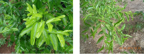 2013年4月下旬,在陜西大荔楊家棟冬棗園,針對(duì)缺素冬棗樹(shù),噴施國(guó)光絡(luò)微2次,間隔15天噴施一次,2013年5月20日,觀察缺素棗樹(shù),葉片轉(zhuǎn)綠,棗吊生長(zhǎng)正常,花蕾分化好。