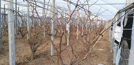 扣棚時(shí)間一般在2月中下旬。過早,萌芽固然早,地溫提升過慢,根系不活動(dòng),造成萌芽不整齊,若遇低溫倒春寒,易造成凍害,影響生長(zhǎng)。過晚,一方面失去扣棚的意義;另一方面,此時(shí)外界氣溫較高,極易造成棚內(nèi)溫度居高不下,降溫困難,很容易導(dǎo)致營(yíng)養(yǎng)生長(zhǎng)過旺,花蕾分化不健壯,直接影響開花坐果。