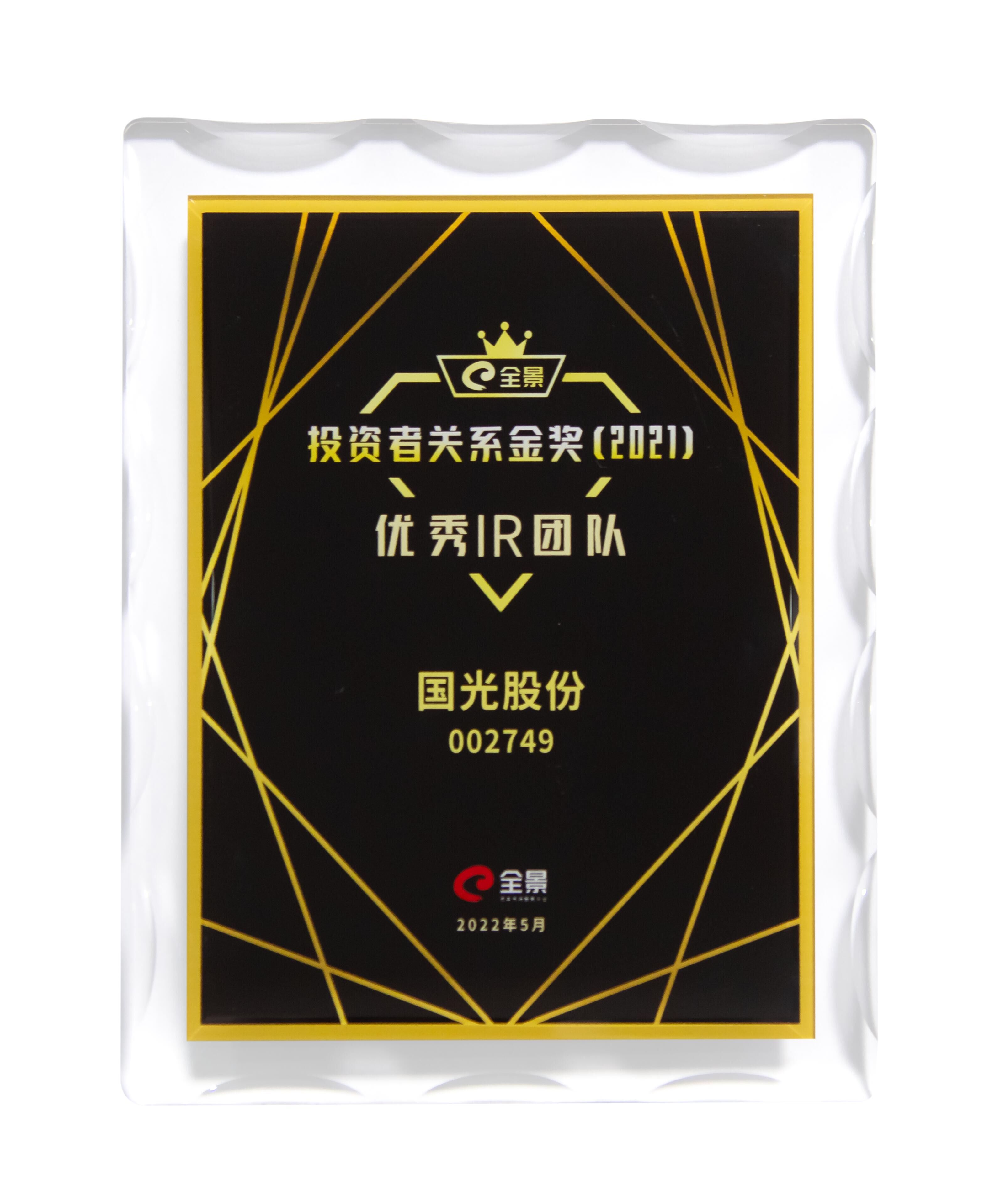 2022年5月13日,由深圳市全景網絡有限公司主辦、南開大學中國公司治理研究院參與推出的“全景投資者關系金獎”2021年度全國性評選,經過專家顧問組最后環(huán)節(jié)的評審,獲獎榜單正式揭曉!國光股份(002749)榮獲“優(yōu)秀IR團隊”獎項!