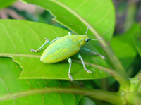 癥狀:金龜子的種類很多,危害芒果主要是銅綠麗金龜。銅綠麗金龜又名銅綠金龜子,是一種雜食性又是暴食性的害蟲,成蟲咬食花穗、嫩梢、幼果,食量大,數(shù)量多,危害嚴(yán)重。其幼蟲蠐螬俗稱雞蟲,是重要的地下害蟲。