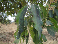 癥狀: 芒果蚜蟲以成蟲、若蟲均集中于嫩梢、嫩葉的背面,花穗及幼果柄上吸取汁液,引起卷葉,枯梢,落花落果,影響新梢伸長,嚴(yán)重時(shí)導(dǎo)致新梢枯死。屬常發(fā)性主要害蟲。同時(shí)還分泌蜜露,誘發(fā)煤煙病。