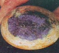 發(fā)生原因: 1、氣體原因。該病害的發(fā)生主要是受有害氣體污染的影響,特別是與二氧化硫的污染有關(guān)。表現(xiàn)在病果末端變黑變硬,果實(shí)過早成熟,無商品價(jià)值。該病病狀只出現(xiàn)在果的頂端,先在果頂出現(xiàn)淡黃色暈圈,逐漸發(fā)展為一淡褐色區(qū)域,并擴(kuò)大,變黑,最后完全覆蓋整個(gè)果頂部。隨著病情加重,黑色部分逐漸向果基方向延伸,占果實(shí)1/3~1/2后停止,果實(shí)其余部分仍保持正常顏色。病部組織失水萎縮、壞死,但不腐爛,且有堅(jiān)實(shí)感?拷敳糠N胚褐變壞死,摘下的果實(shí)果柄處無乳汁溢出,果實(shí)采收后不能正常黃熟,不能銷售。此外,還有果肉部分木栓化;有些果肉部分呈“海綿狀”,有中空現(xiàn)象;有的果肉形成“多團(tuán)塊組織”,果肉中含有分散的白色團(tuán)塊;“米粒狀病”,在果肉中有米粒大小的傷疤,傷疤的四周有棉花狀物環(huán)繞等。以上這些癥狀,尚未檢出其危害的病原菌,均屬生理性病害的范疇。2、果實(shí)缺硼和鈣。