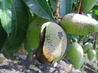 癥狀:薊馬是芒果產(chǎn)區(qū)梢期、花期和幼果期危害較為嚴(yán)重的害蟲之一。薊馬好吸食幼嫩組織。吸食果汁后,果表面起小疙瘩造成果皮粗糙,危害嚴(yán)重時(shí)候造成芒果失去商品性。危害較輕者也是芒果生產(chǎn)后期產(chǎn)生“露水斑”、“老年斑”的可能原因之一。