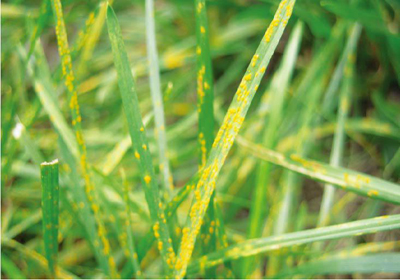 【發(fā)病特點】:銹病分布廣、危害重,所有禾本草都能被侵染發(fā)病,尤其是冷季型草中的多年生黑麥草、高羊茅和草地早熟禾等受害最重,狗牙根和結縷草等也可受害。禾草感病后葉綠素被破壞,光合作用降低,呼吸作用失調(diào),蒸騰作用增強,大量失水,葉片變黃枯死,草坪景觀受很大影響。