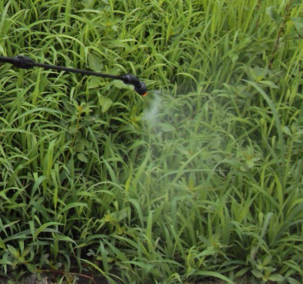 使用除草劑應用選用材質好堅固耐用、壓力足扇形噴頭的噴霧器。施藥前測定噴灑流量和行走速度,確定噴幅寬度,準確計算噴液量和藥量噴霧時定噴霧壓力、噴頭距地面高度和行走速度等。苗后除草劑最佳噴灑霧滴直徑250-400um,內吸性霧滴密度30-40個/cm2,觸殺性霧滴密度50-70個/cm2。